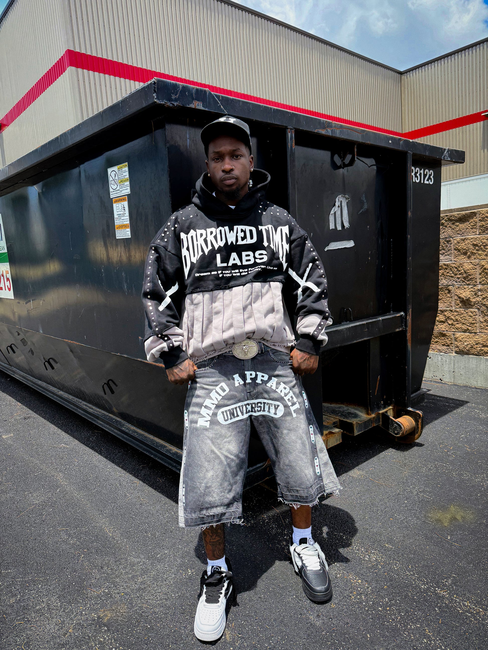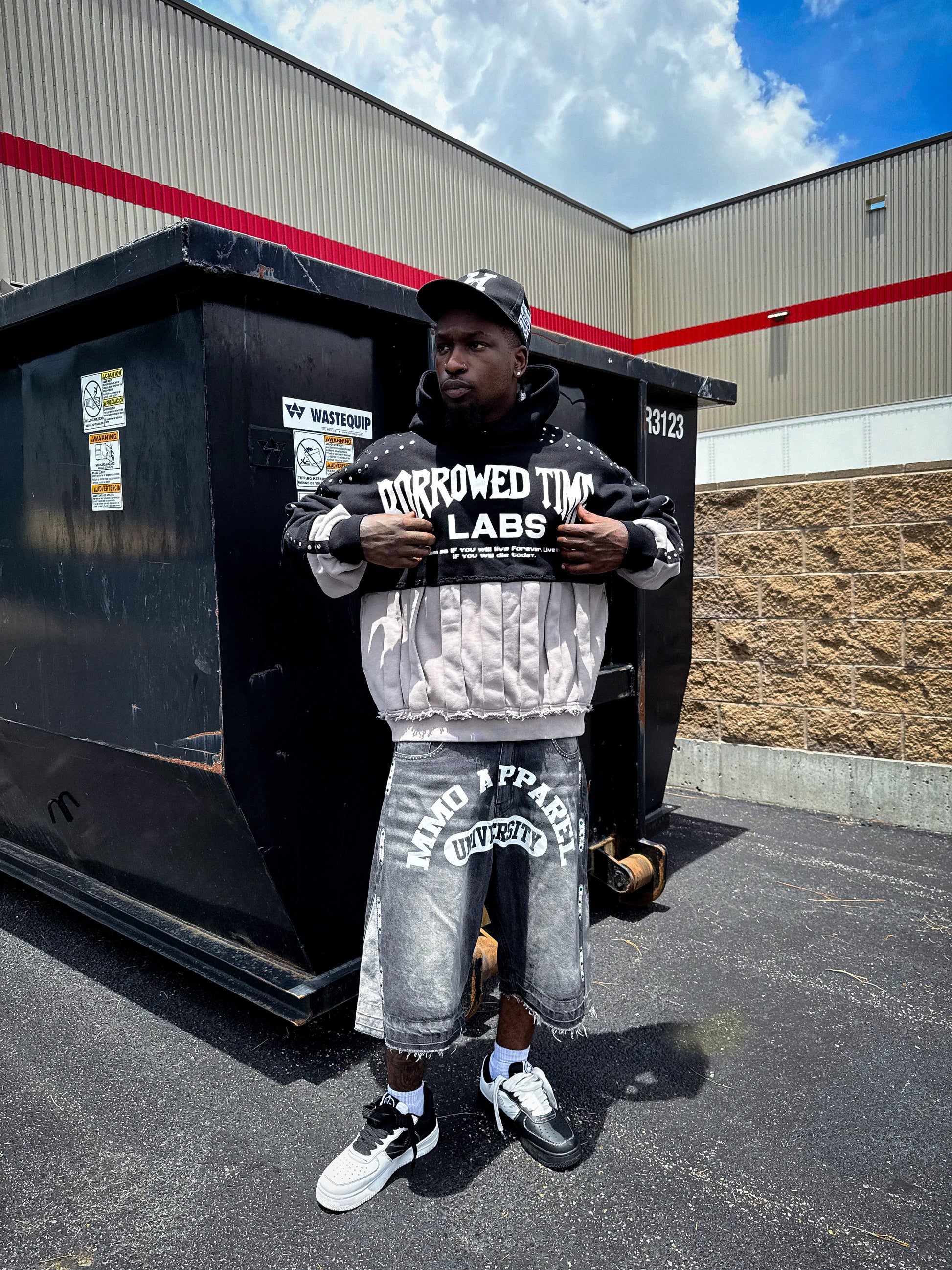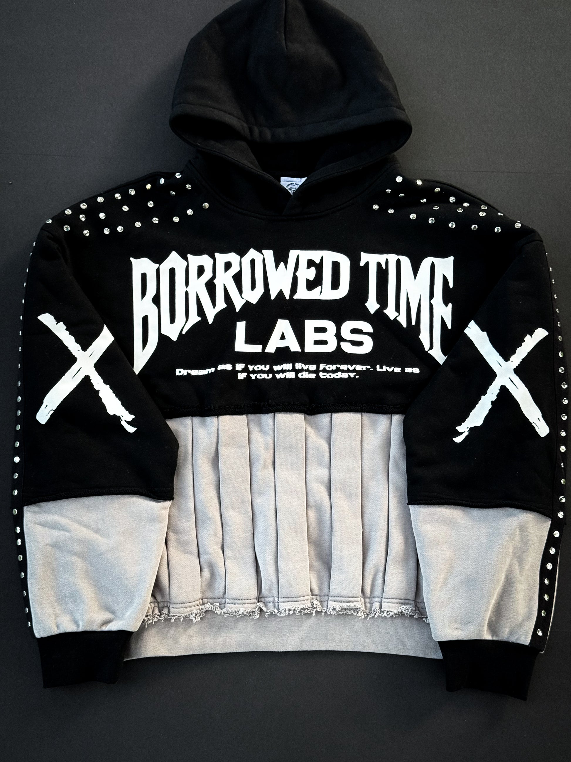 - Custom “Borrowed Time Labs” front print with bold shoulder-to-sleeve detailing